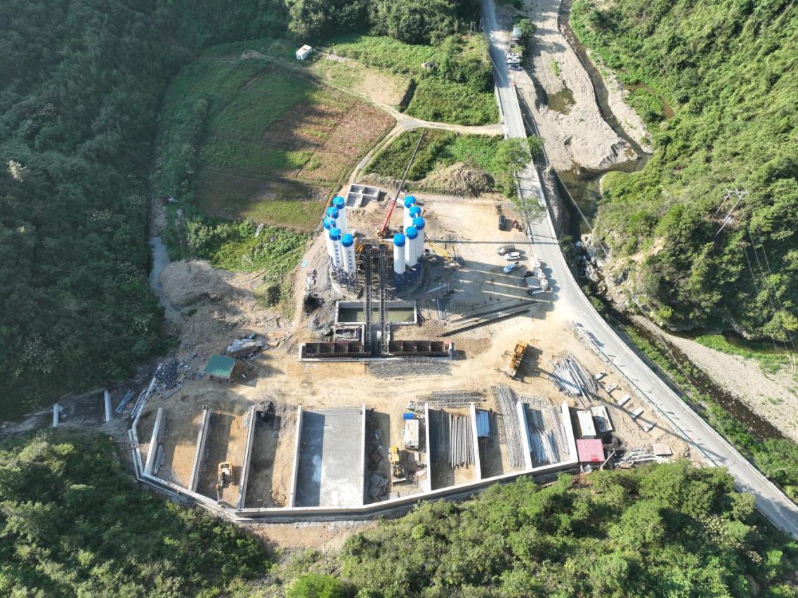 目前,项目经理部、一工区、二工区驻地已经装修完成;工地试验室母体通过验收;2#拌和站场地已平整,料仓墙身及拌合站基础施工完毕,安装水泥罐10个;2#钢筋加工棚场地已平整,正在进行型钢大棚施工。