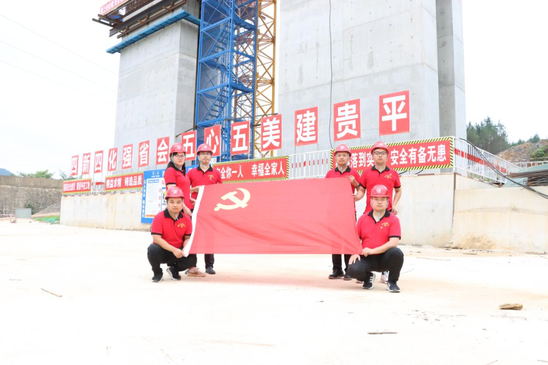 7月1日,贵州公路集团第九工程有限公司广大党员与党旗合影,祝福亲爱的党生日快乐!祝福我们伟大的祖国繁荣富强!