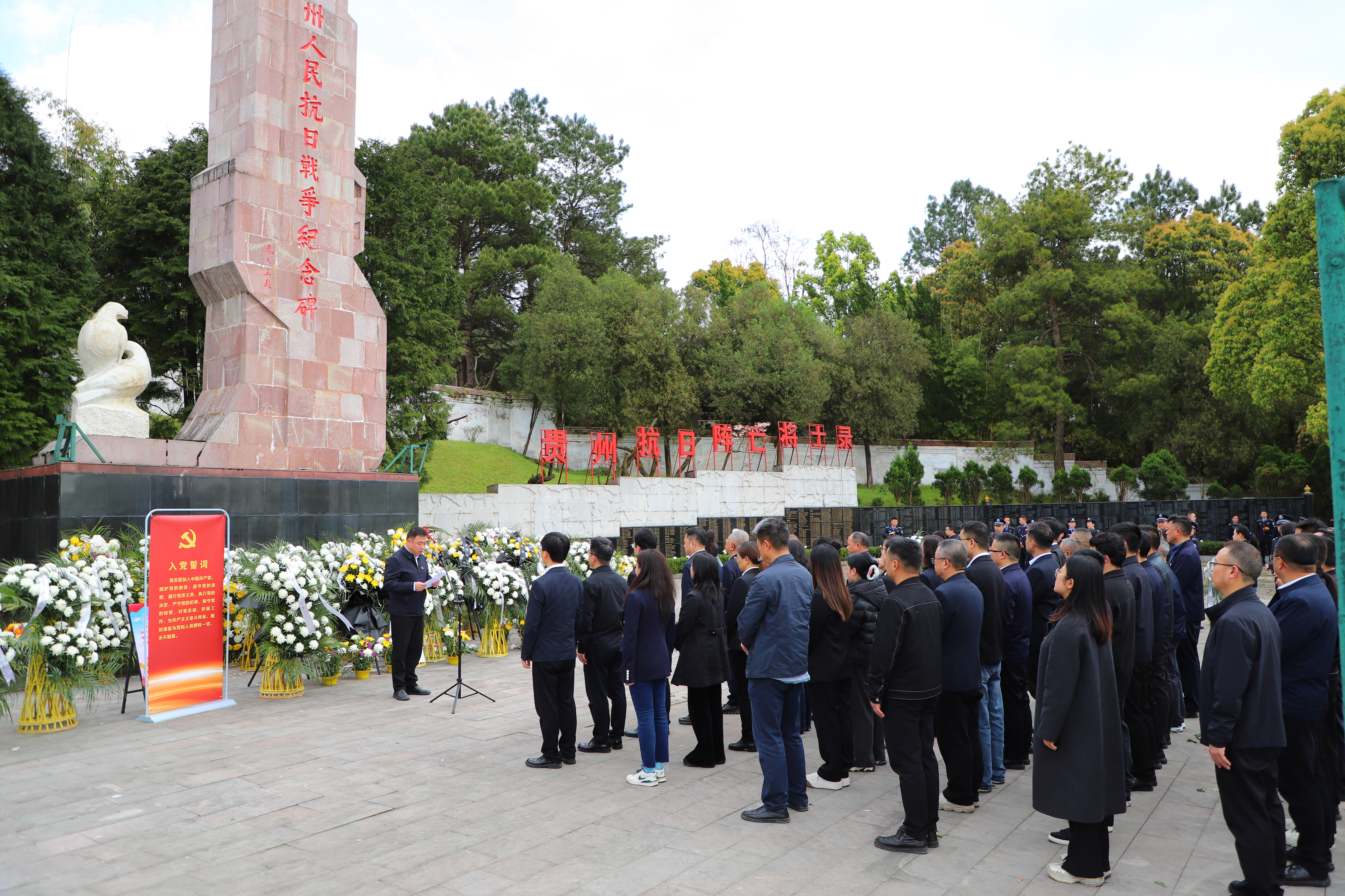 集团党委副书记、董事、工会主席崔文武在讲话中指出,贵州人民抗日战争纪念碑不仅是一段峥嵘历史的见证,更是一座精神的丰碑,镌刻着先烈们的爱国情怀与民族气节,承载着永不磨灭的红色记忆。作为新时代的共产党员、作为“两路精神”的传承者,全体党员干部要铭记历史、缅怀先烈,从苦难辉煌中汲取信仰力量,坚定理想信念,永葆对党忠诚的政治本色;要以先烈为镜,锤炼党性、砥砺初心,把英烈精神融入日常工作和党性教育中,厚植家国情怀,敢于担当、勇于作为;要把对先烈的缅怀之情转化为干事创业的强大动力,聚焦主责主业,发扬新“铁军”精神,打造优质、廉洁、民心工程,以实实在在的业绩告慰英烈、不负时代。