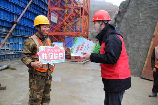 第三工程公司团支部在安盘七标工地发起“工地暖心日”活动。志愿者们为工友送上热气腾腾的汤圆和手写祝福卡,用“舌尖上的温暖”驱散施工疲惫;更通过“安全知识快问快答”互动,发放流感防治手册及暖手贴,让安全意识和关怀“双向奔赴”。