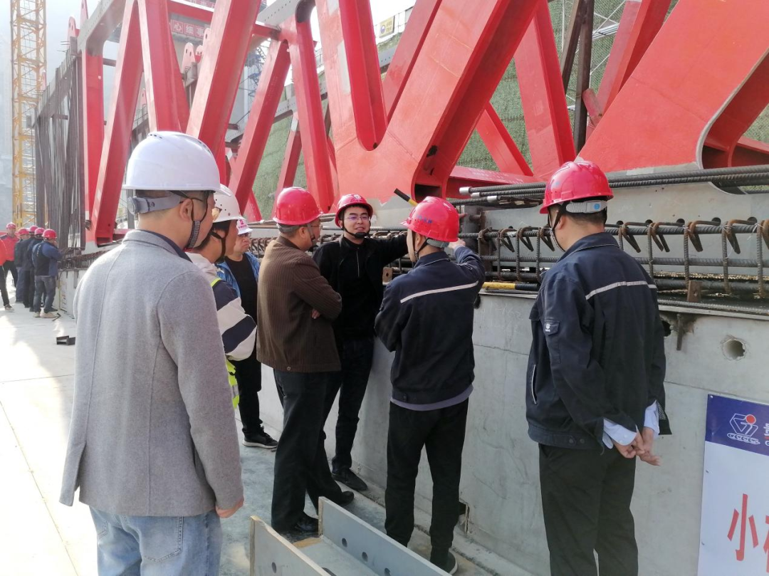 验收现场,验收组查验了制造成型的钢桁梁和钢桁架拼装的几何尺寸、线形、焊缝质量等情况,并对大桥钢桁架拼装后续施工提出指导意见。