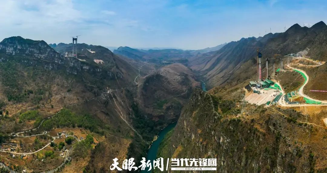 花江峡谷大桥为六安高速重大控制性工程,全桥长2890m,主桥为1420m单跨钢桁梁悬索桥。最大索塔高262m,桥面距江面垂直高度为625m,大桥预计2025年初建成,建成后将超越杭瑞高速北盘江大桥,成为世界第一高桥。