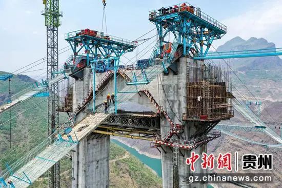 5月1日,正值“五一”国际劳动节,在由贵州公路集团承建的贵州纳(纳雍)晴(晴隆)高速公路重点控制性工程——牂牁江大桥15标建设项目上,各个工种的工人坚守岗位、抢抓工期建设大桥,以确保大桥能够如期通车。牂牁江大桥全长1849米,主跨长度1080米,是一座钢桁梁悬索桥。