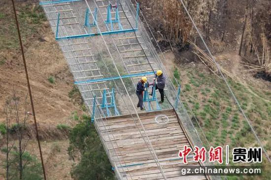 工人们在大桥猫道上吊装设备。瞿宏伦 摄