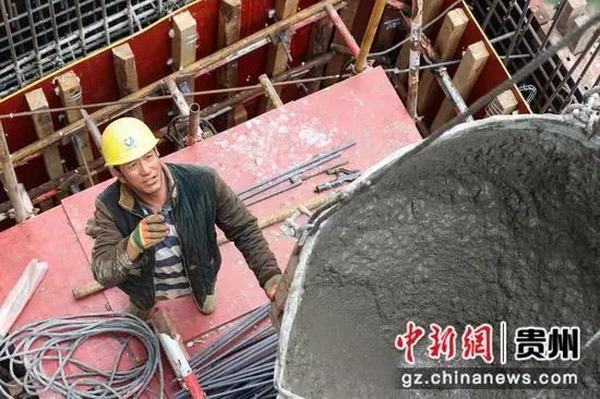 一位工人在大桥5号主塔侧耳指挥浇筑。瞿宏伦 摄