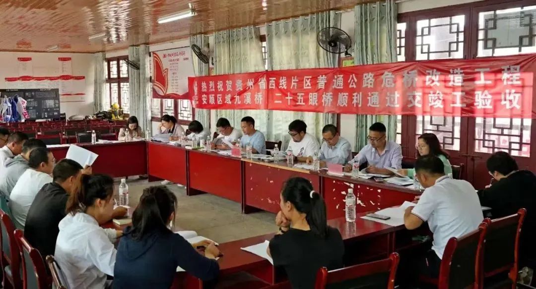 当天,由安顺公路管理局等单位组成的验收组现场查看了九溪桥和二十五眼桥,对桥梁桥面宽度、护栏高度等主要构件尺寸、桥梁外观质量及桥梁附属设施等进行检查验收。在随后召开的交竣工验收会上,各单位依次对项目验收情况进行反馈,充分肯定项目整体质量,结合第三方检测单位检测报告,一致同意九溪桥、二十五眼桥危桥改造工程通过交竣工验收,评定为优良工程,正式投入使用并转入养护阶段。
