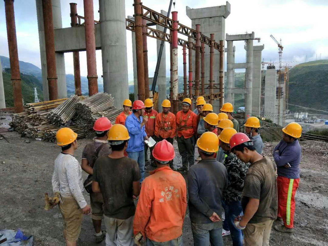 随着交通工程周转材料纯租赁模式的转变,2017年7月至2018年11月,龙尚成在参加六威高速15标李子沟特大桥六盘水岸引桥现浇支架搭设施工时又碰到一块硬骨头,大桥一共有10跨40米引桥,两跨间地势陡峭,桥面海拔2100米,最大风力10级,11月份开始凝冻。难度最大的是高度65米的第十跨下部架体构件拆除,6米钢支撑单件最重材料达1631公斤。龙尚成和同事通过各种模拟、手绘草图,最后利用施工现场现有的贝雷梁、型钢、卷扬机等材料机具,在桥面上组装一个可移动吊架进行支架结构拆除作业。该方案有效实施,既缩短了工期,节约施工成本80余万元,安全风险也得到有效控制。