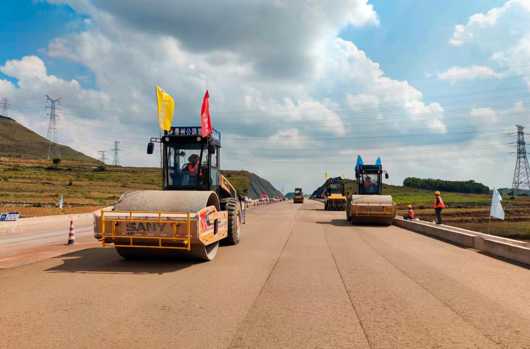 六安路面4标全长41.98公里,对应土建11、12、13、14标,桥隧比为18.63%,路线途经安龙县的张家沟、笃山镇、钱相街道,设T型枢纽互通与汕昆高速搭接;项目主要施工内容为主线、匝道、互通连接线路面工程以及K111+460-K150+698段景观绿化工程及桥梁防水层施工。此次摊铺路段全长550米,宽12.75米,厚20厘米。
