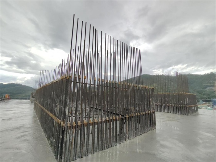 南明河特大桥是贵平项目重难点工程及全线控制性工程,全长1129.8米,主桥最大墩高175米,主桥为96+2×180+96米连续钢构。其中,9号主墩承台尺寸为32.5米×21.3米×6.5米,采用C35混凝土浇筑,浇筑方量约4500立方米。