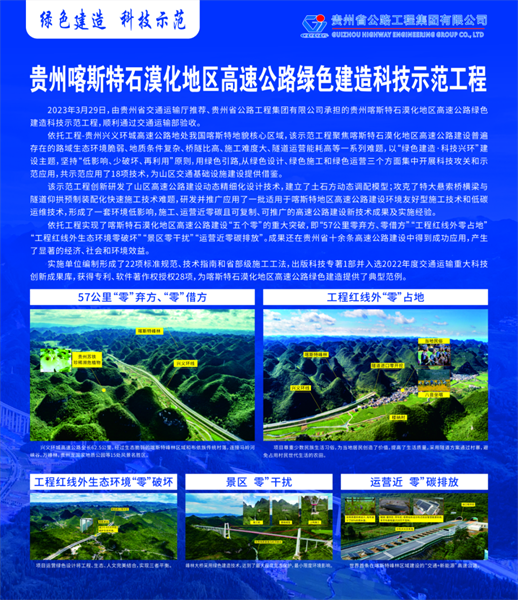 截至目前,依托科技示范工程,项目获得“贵州省五一劳动奖状”、贵州省绿色施工示范工程、2022年度公路交通优秀设计一等奖、贵州省公路学会科学技术特等奖、2023年全球道路联合会唯一全球道路成就奖环境保护类奖等一批奖项荣誉。