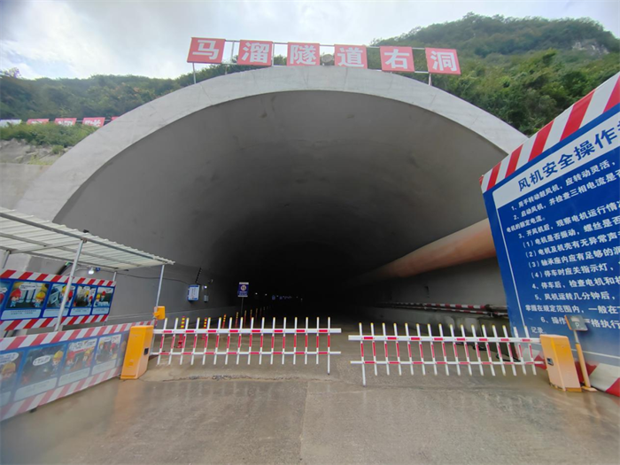 马溜隧道为分离式中长隧道,左幅全长723米,最大埋深约202米;右幅全长730米,最大埋深约189米。隧道左右幅线间距约为30—35.7米。隧道进口采用直削式洞门,隧道出口采用端墙式洞门。