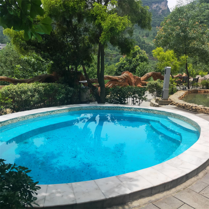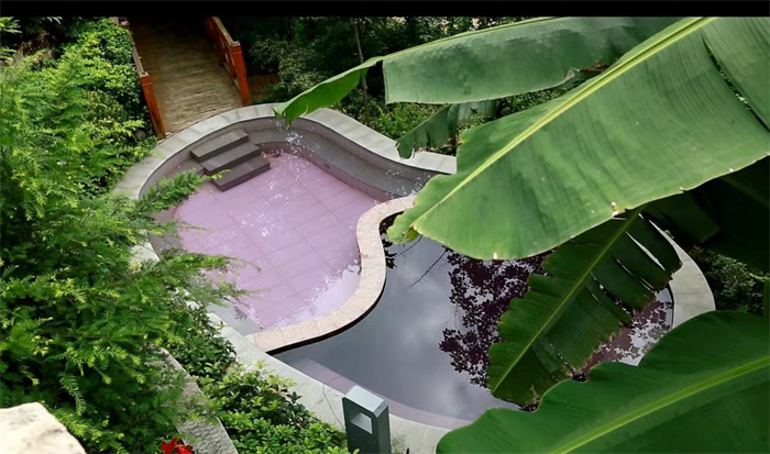其中,室外温泉泡池区共有形态、大小、水温各异的特色室外泡池40余个,水源于地下1700米热水层,温度高达56摄氏度,泉水含氡气、锶、偏硅酸、硫化氢、氟等20多种矿物质和微量元素。