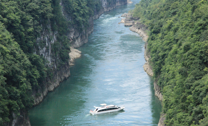 不止泡汤!紧邻六广温泉的六广河峡谷观光旅游项目,风光迤逦,水能资源丰富。河谷两岸谷坡陡峭,多呈嶂谷,水面到山顶高达350至400米,峡谷时宽时窄,有张有弛,加上两岸峭崖上多悬挂飞瀑、流泉,山景与水景穿插相映,形成有山、水、峡谷、石林、洞穴等一江七峡四十景自然景观,变幻无穷,令人惊奇万分。