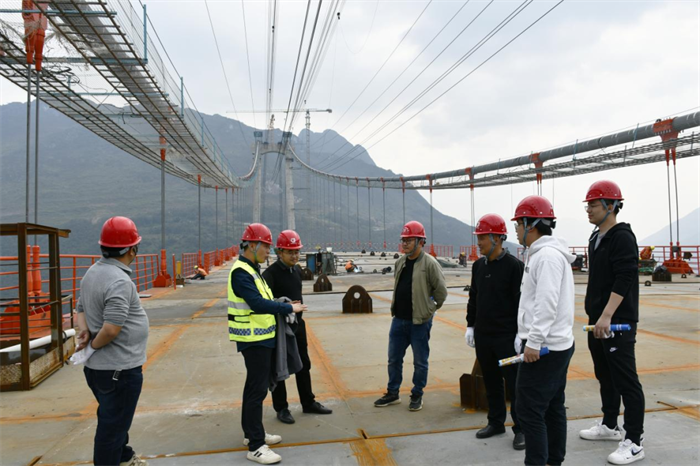 参培人员还先后深入纳晴15标牂牁江大桥和纳晴12标乌蒙山特大桥施工现场,实地观摩纳晴15标3D模型智慧展厅、牂牁江大桥猫道和钢梁吊装、乌蒙山特大桥主拱圈节段预制、安装及缆索吊装系统布置,详细了解牂牁江大桥的技术创新成果和乌蒙山特大桥主要施工工艺、工法、重难点施工方案等情况。集团公司副总工程师周大庆结合自己多年建桥经验,从特殊结构桥梁施工创新技术研发方面进行现场授课。