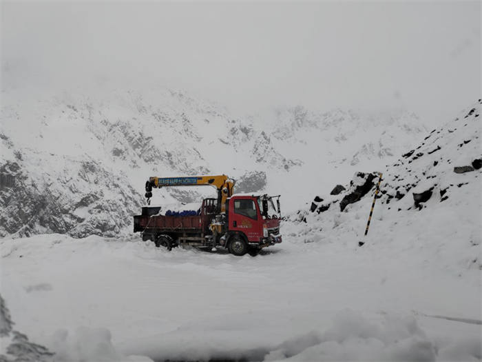 第七工程公司承建的西藏S303线康玉至多吉岔口段SG-2标果藏拉隧道地处海拔5200米~5600米的冰蚀地貌发育的高山寒冻和高山冰雪带,受低温影响(夜间最低温度零下25摄氏度,白天最高温度4摄氏度),再加上近期降雪频繁,材料运输也影响,项目建设面临极大挑战。项目部积极组织人员开展“道路保持畅通”行动,确保材料安全运输到位,稳步推进康多线SG-2标冬季施工。