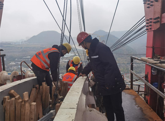 连日来,兴义市气温一路走低,夜间温度更是急转直下,加之峡谷风力较强,为金州大桥当前正在进行的主缆牵引施工带来了严峻挑战。