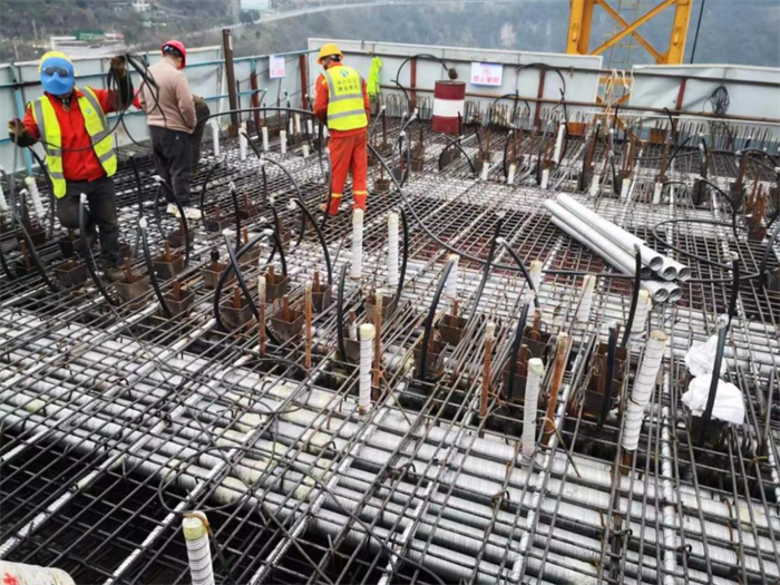 寒潮来袭,为保障乌蒙山大桥主拱圈预制节段混凝土的质量,第八工程公司纳晴12标对新浇筑的混凝土采取棉被包裹或蒸汽养护措施,以确保钢桁混凝土结构不受低温天气影响,质量可靠。