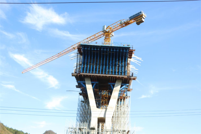 为了保护通村公路简支梁桥和满足大桥修建的需要,项目修建了一座临时钢便桥,最大限度地减少对当地设施的破坏。同时,摆龙河大桥6#、7#主墩上半部分采用Y型桥墩,将力学与美学完美结合,大桥建成后对主墩承台进行覆土掩埋,恢复环境绿化,使大桥更好地与自然环境融为一体,相得益彰。