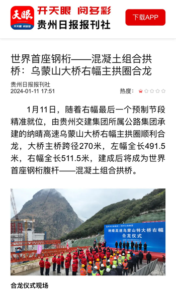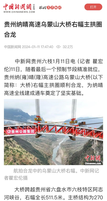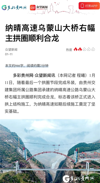 大干开新局 | 乌蒙山特大桥右幅主拱圈顺利合龙