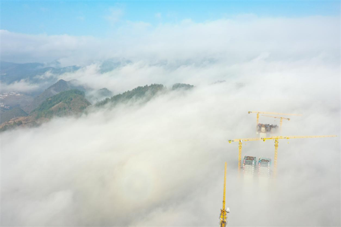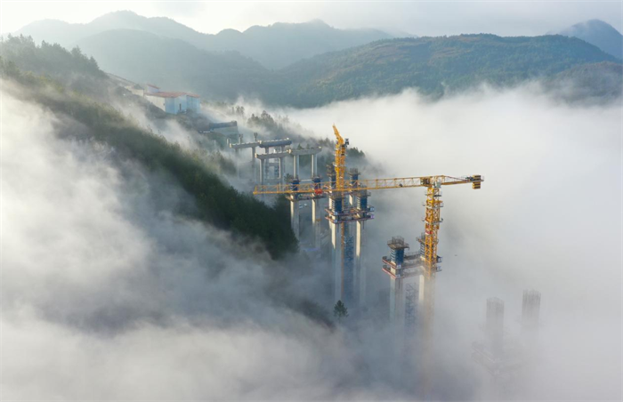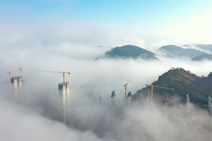 近日,由贵州公路集团第六工程有限公司承建的贵平高速公路南明河特大桥施工现场,桥墩在云雾中时隐时现、美不胜收。