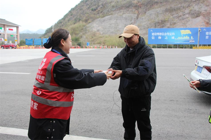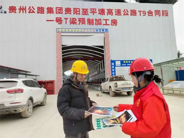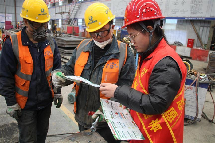第三工程公司青年志愿者在生产一线发放宣传手册普及消防安全知识增强消防防范意识。