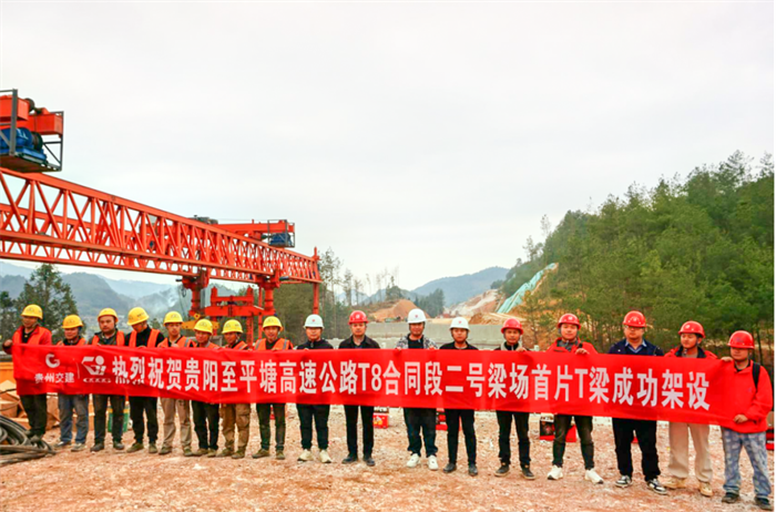 近日,由贵州公路集团第九工程有限公司承建的贵平8标项目沙子坡大桥成功架设首片T梁。