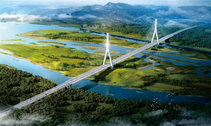 青洲柳江特大桥位于柳州市白沙镇,作为广西鹿峰高速项目的控制性工程,是目前广西壮族自治区最大跨径的无辅助墩斜拉桥,也是国内第二大跨径的无辅助墩斜拉桥。采用双塔双索面半漂浮体系斜拉桥,主桥全长1018米,全桥总重约1.4万吨。