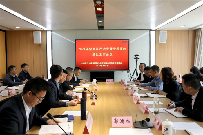 4月1日,贵州公路集团第八工程有限公司召开2024年全面从严治党暨党风廉政建设工作会议。会议学习传达了相关会议精神,集中观看了警示教育片,开展集体约谈,各项目部、本部各部门、各党支部签订了党风廉政建设目标责任书。