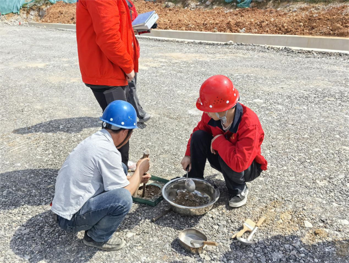 路基交验组严格按照规范要求及交验程序,对湾滩河收费站场坪的弯沉、高程、压实、平整度、结构尺寸等进行了全面检测。根据检测数据结果,各项指标均符合设计规范及相关施工验收标准,一次性交验成功。