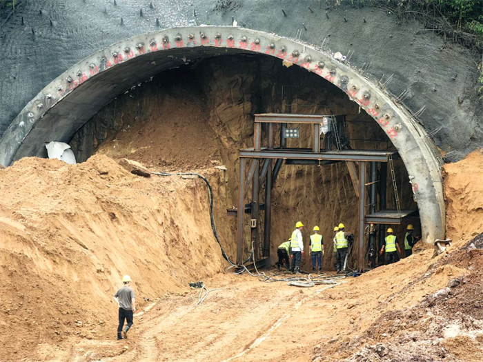 贺州北过境线2标全长11.3公里,采用双向四车道高速公路技术标准建设,标段内设隧道4座,其中天峰岭隧道左幅长570米、右幅长678米,为短隧道。