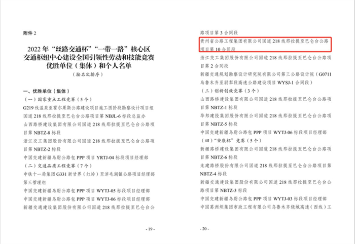 获2022年“丝路交通杯”“一带一路”全国引领性劳动和技能竞赛优胜单位