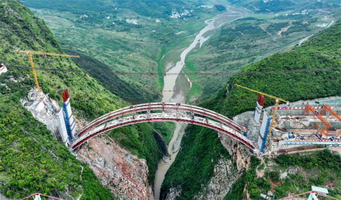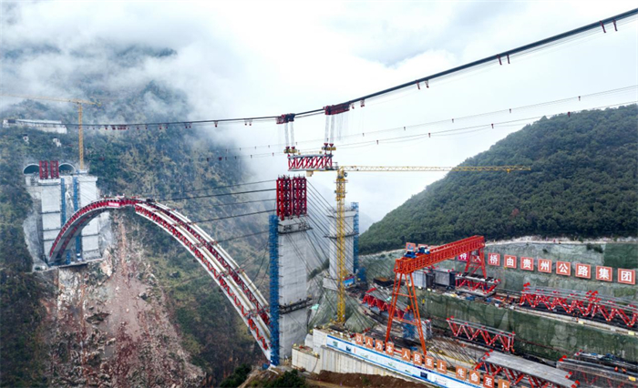 2024年5月27日,乌蒙山大桥双幅主拱圈顺利合龙