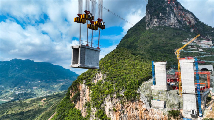 2023年8月29日, 乌蒙山大桥无塔架缆索吊装系统试吊成功