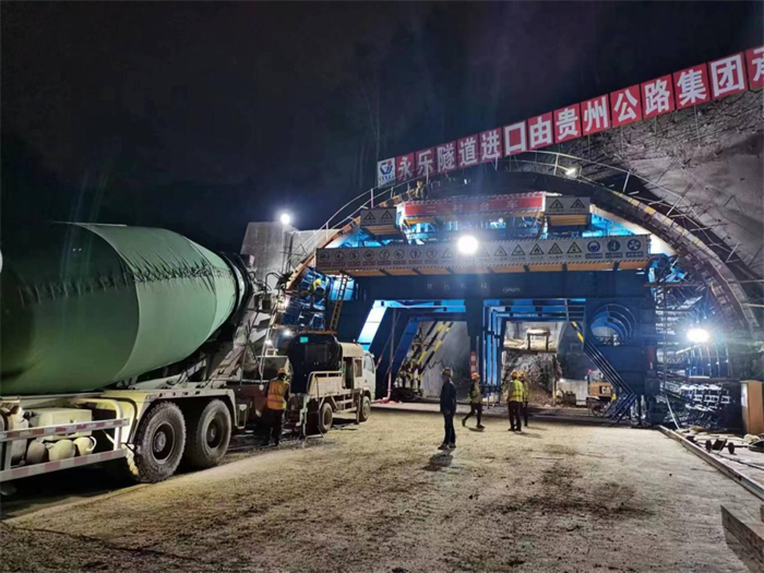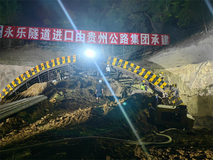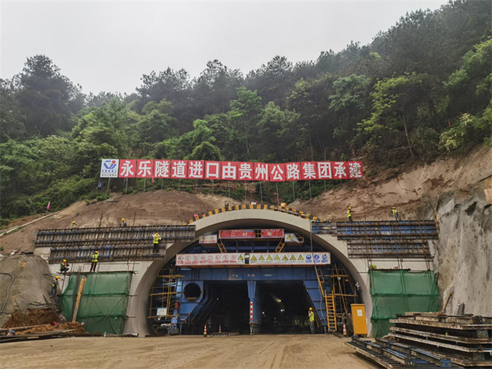 导读:由贵州公路集团第七工程有限公司承建的贵阳至黄平高速公路延伸段永乐隧道位于贵阳市境内,连接南明区永乐乡与乌当区东风镇大关口,是全线重点控制性工程。永乐隧道右幅全长1050米,左幅全长955米,为分离式双向8车道隧道,单幅宽度达到17.25米,净高5米,是贵州公路集团目前承建的最宽隧道
