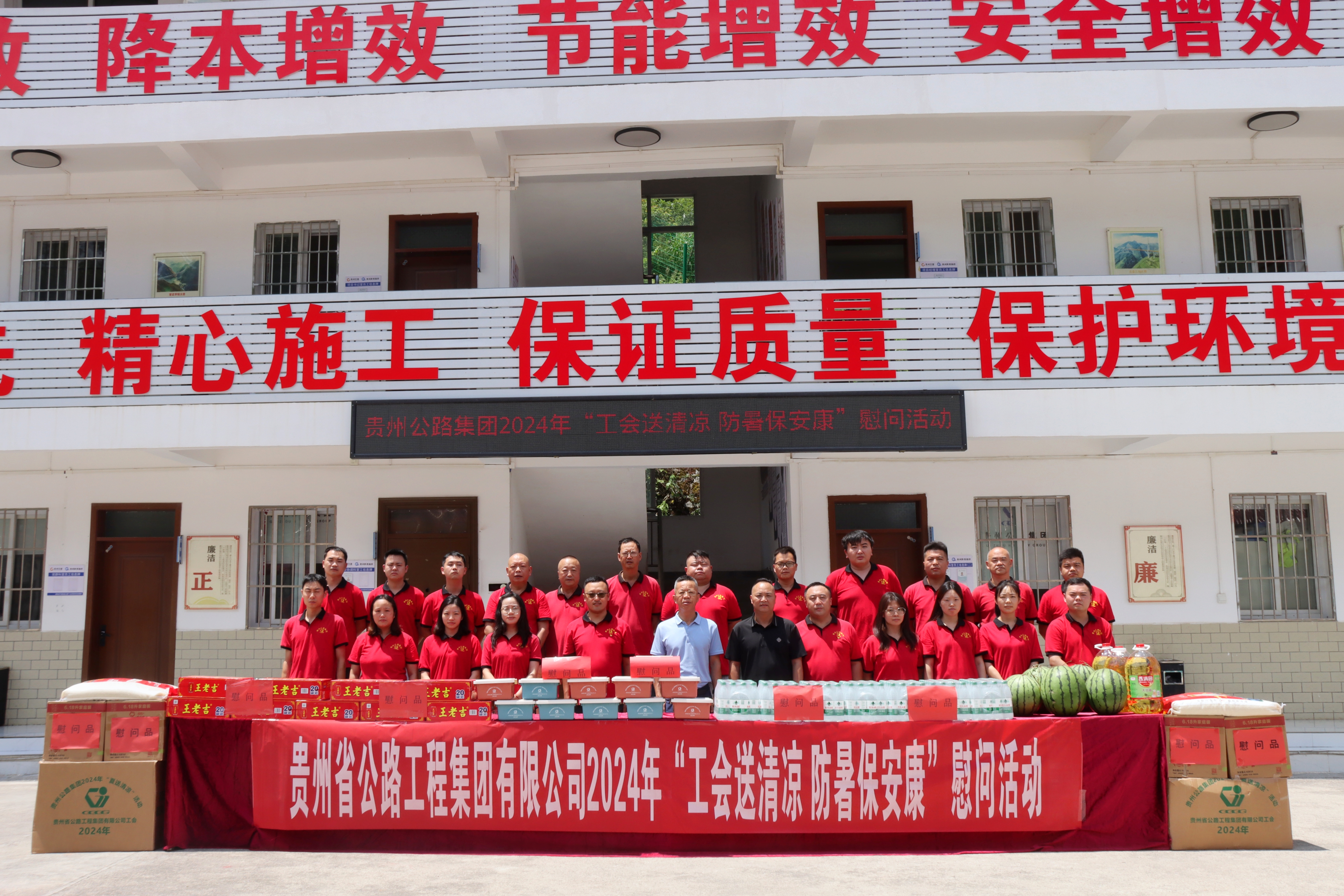 近日,贵州公路集团党委委员、副总经理黄任远到第八工程有限公司承建的贵平13标调研并开展“夏送清凉”活动。他强调,要结合实际情况合理安排施工作业时间,切实保障项目部全体人员身体健康和生命安全,同时,要鼓足干劲、力争上游,在确保安全质量的前提下,攻坚克难、大干快上,力争早日完成施工任务。