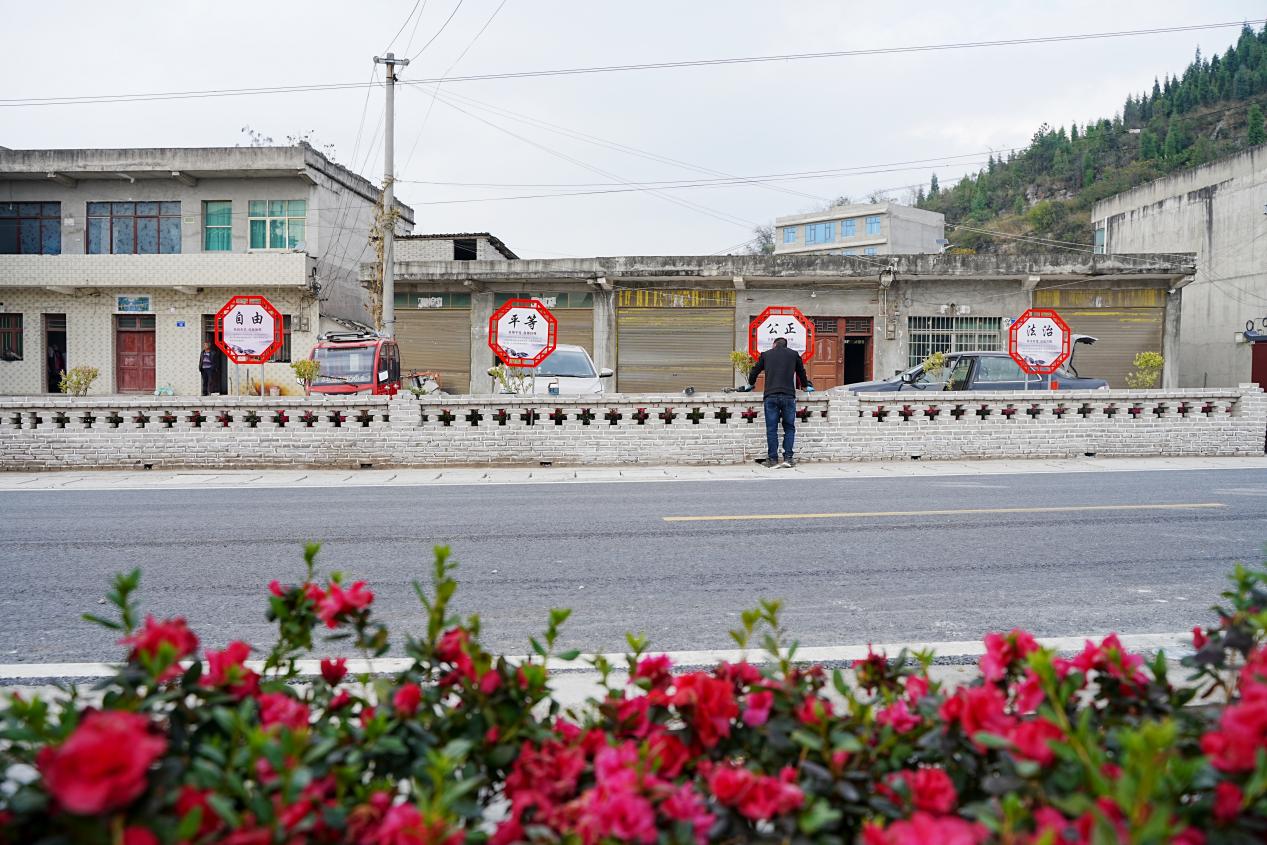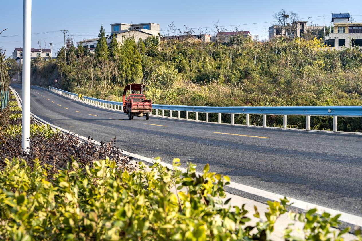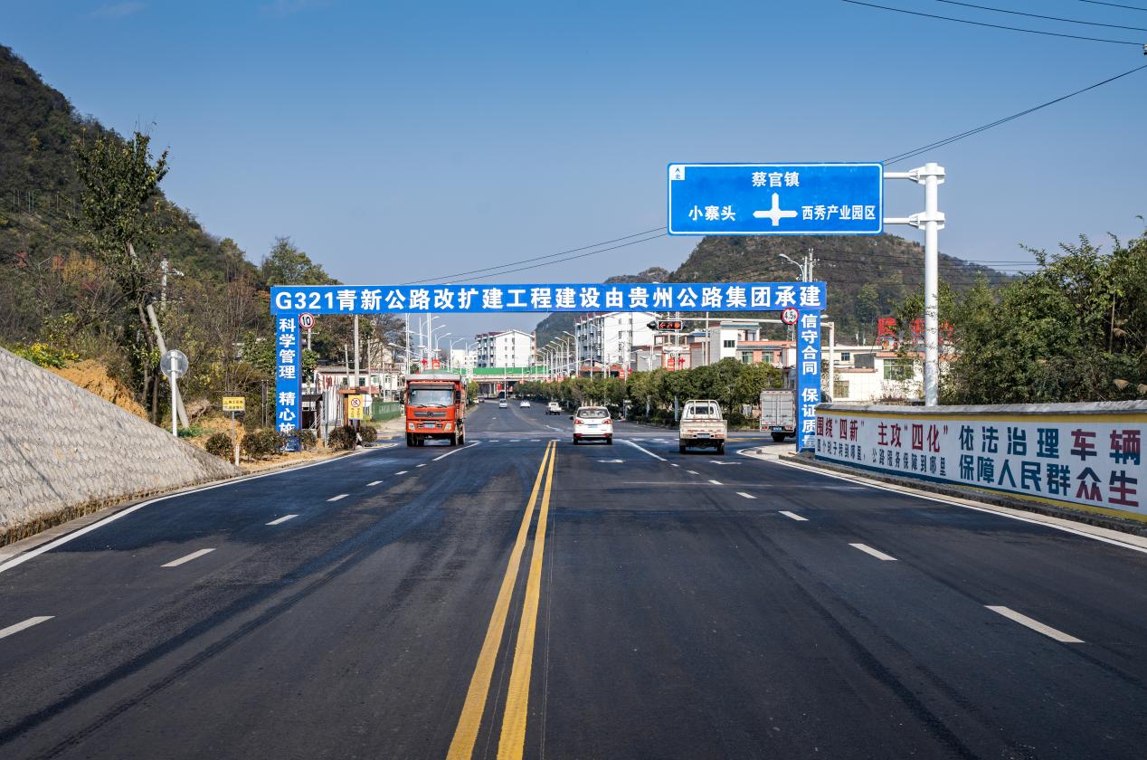 G321青新公路K5+700段错落有致地栽种着绿色、紫色的小树苗