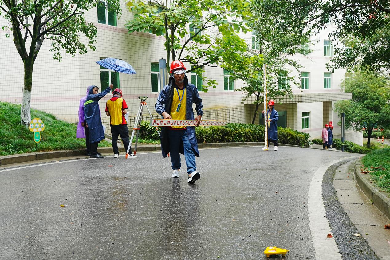 “根据比赛要求,我们必须保证水准仪的前后视距离较差累计不大过10米。”龚飞说,“在这个陌生的路段上,我们只能根据经验,用脚一步步来走、来量。”