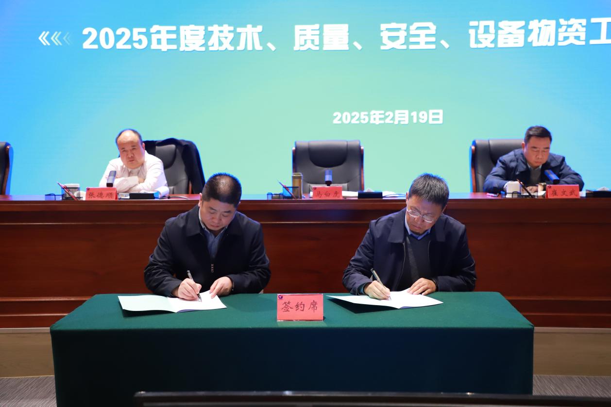 会上,集团本部总工程师办公室、质量安全管理部、设备物资部分别作了工作报告,第八工程公司纳晴12标、第七工程公司、设备物资公司特种设备巡检小组分别围绕各自工作作交流发言。集团领导与相关公司签订《质量安全目标责任书》,并表彰了2024年度在技术、质量、安全、设备物资管理工作中表现突出的先进单位和个人。
