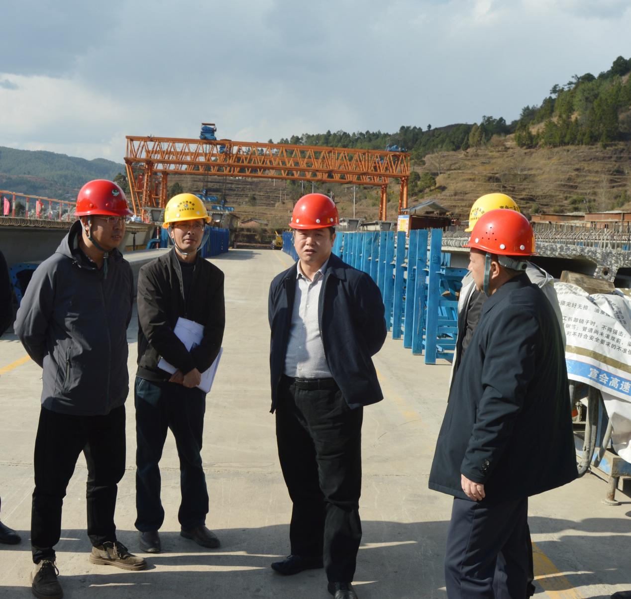 马白虎一行深入云南宣会1-1分部1#梁场、1-2分部2#预制场施工现场,仔细了解项目复工复产、质量安全、施工重难点等情况,并提工作要求