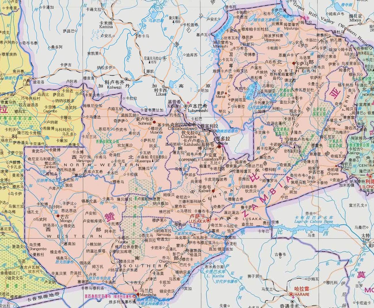 赞比亚共和国是非洲中南部的一个内陆国家,简称赞比亚,境内大部分地区为海拔1000~1500米高原,地势大致从东北向西南倾斜。属热带草原气候,温和凉爽,年平均气温在18-20℃之间。国土面积75.26万平方公里,人口2057万(2023),大多属班图语系黑人,有73个民族,奔巴族为最大部族,约占全国人口的33.6%,首都卢萨卡,全国下设10省103区。