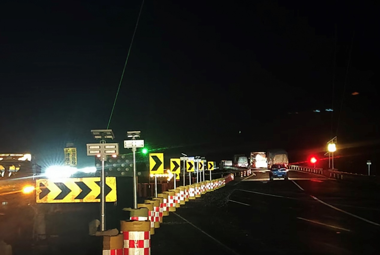 夜幕降临,间隔20米的太阳能警示灯开始“上岗”,将施工区化作光的海洋。“这些警示灯组成的‘警示走廊’,即便在夜间、大雾、风沙、雨雪等恶劣天气条件下,也能让司机提前1公里就能看清施工轮廓。”技术员袁定帮说。