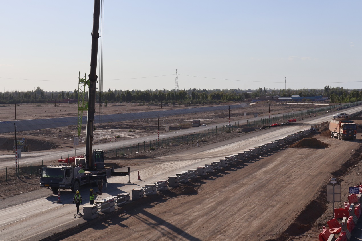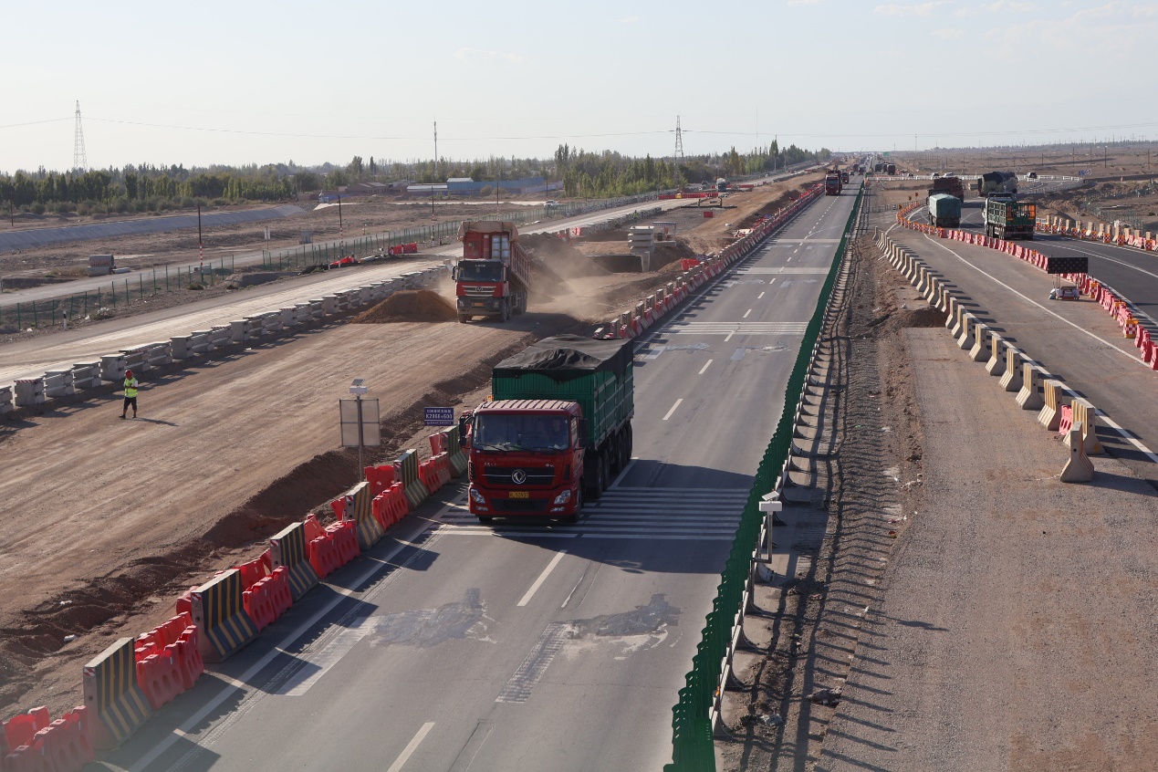 抵达新疆G30星哈5标项目现场前,我们便听同事介绍,这里施工的最大特点是,日均车流量超1.5万辆,施工作业面与行车道最近处不足2米。来到现场,当重型卡车疾驰而过时,我们真切体会到同事们口中星哈版“速度与激情”的深意。