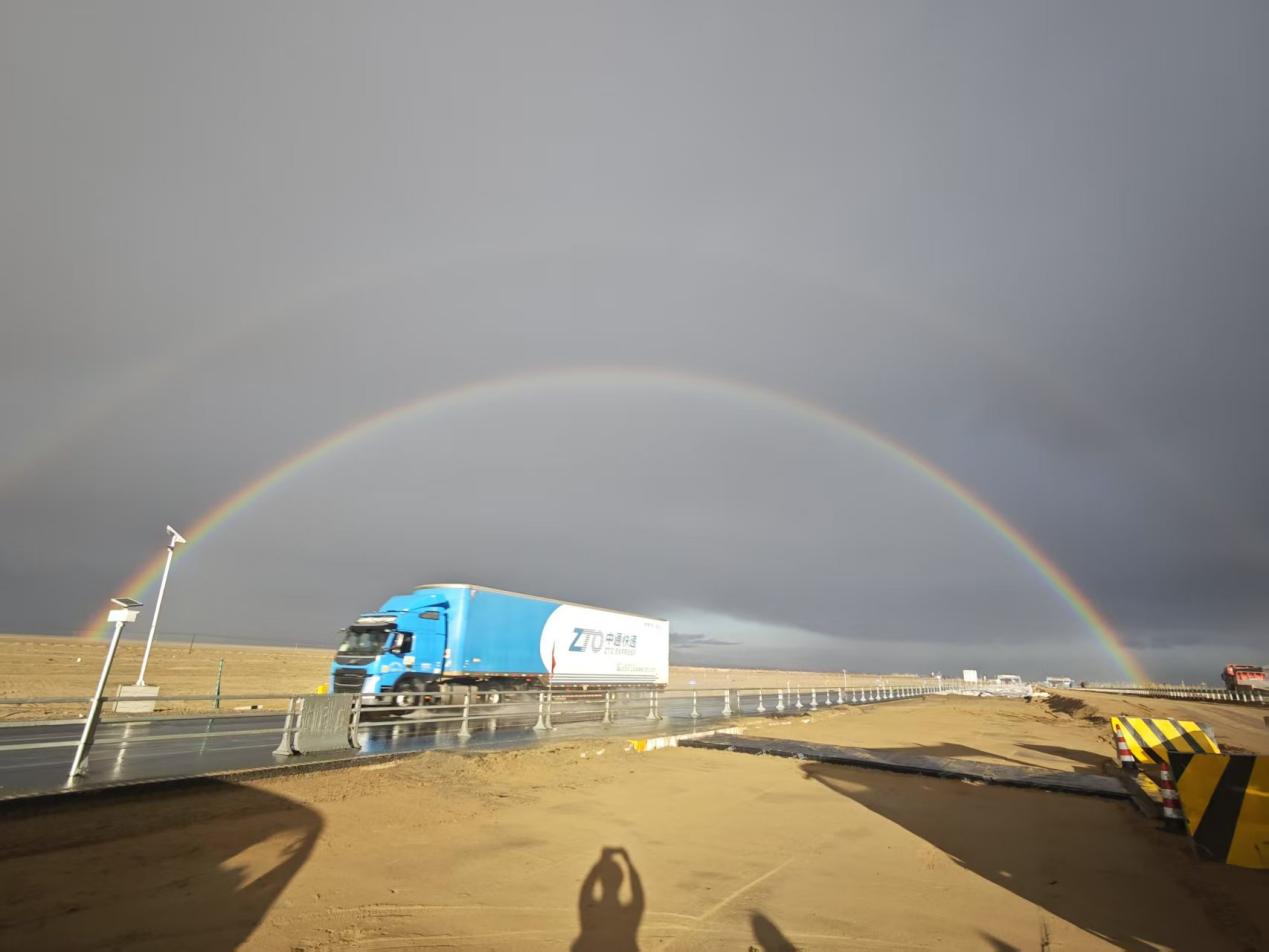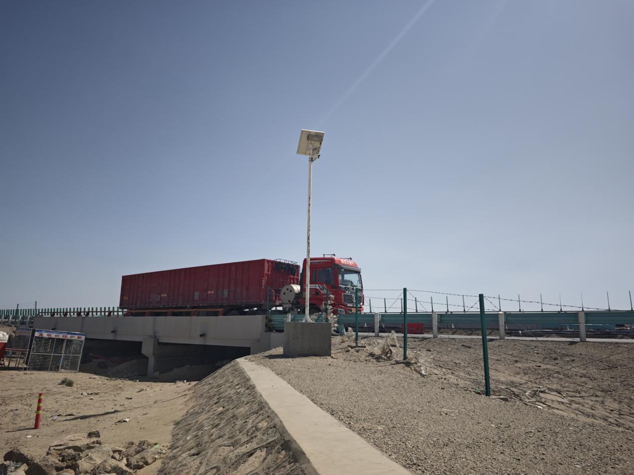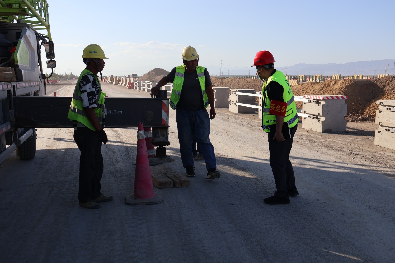 当第一缕曙光照亮戈壁滩,我们看到项目部的无人机已经起飞,它的任务是排查隔离墩是否移位、工人反光衣穿戴是否规范;另一边,布设在全线的30个高清智能摄像头如“鹰眼”一般,正在识别违规闯入车道、未正确佩戴安全防护用品等违规作业行为。