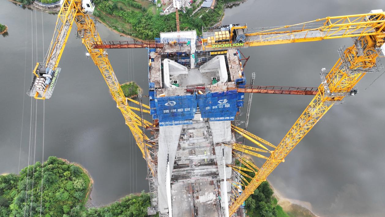 2025年5月23日,百花湖大桥11号主塔封顶。