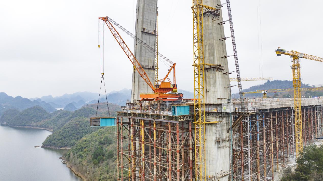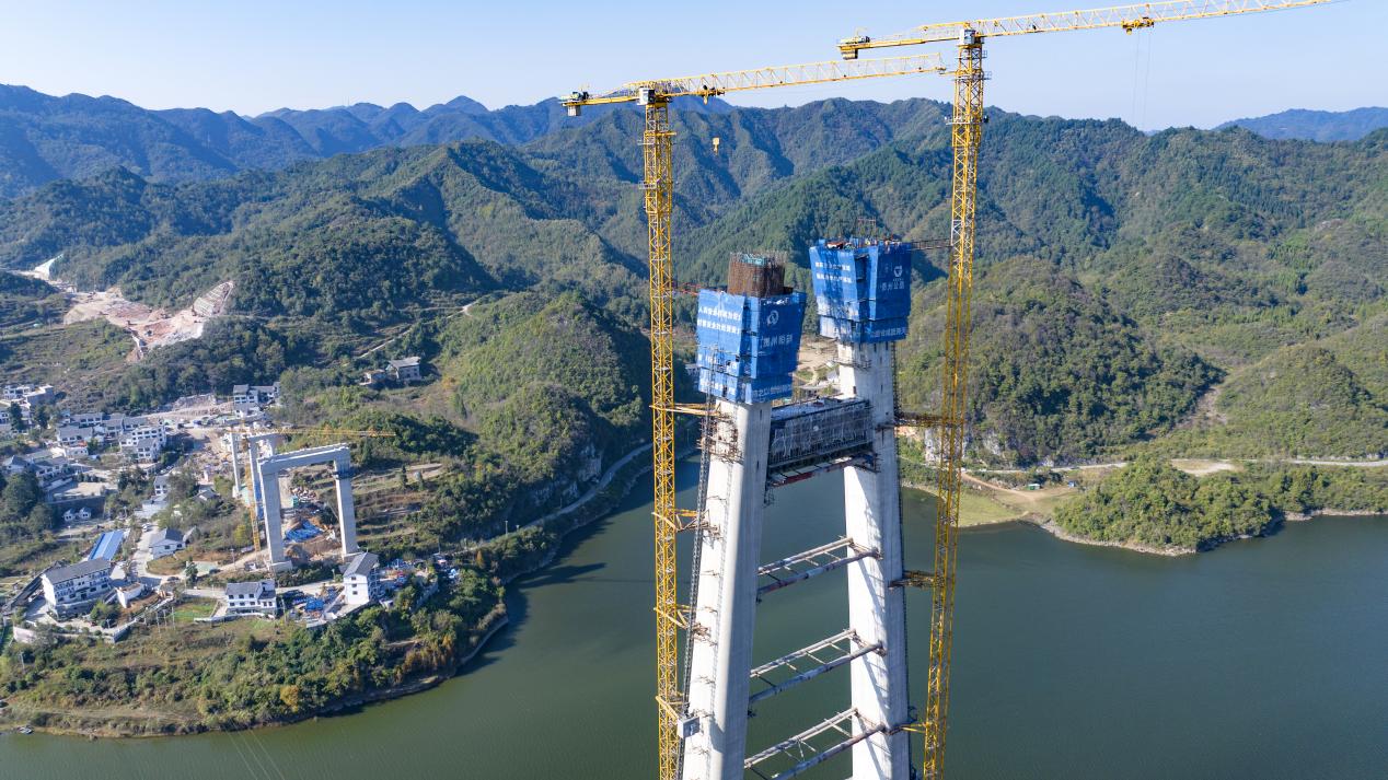 2024年7月18日,百花湖大桥11号主塔突破百米大关。