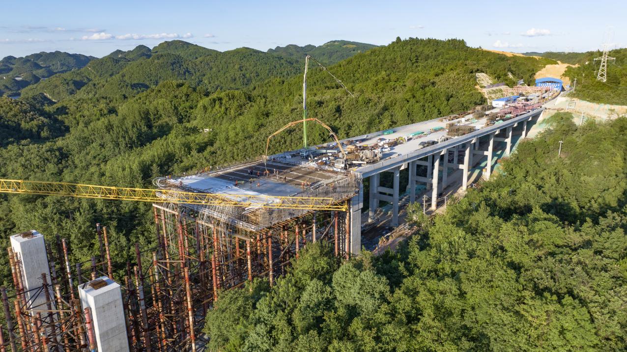 2024年7月20日,百花湖大桥边跨混凝土主梁第五浇筑段浇筑完成。