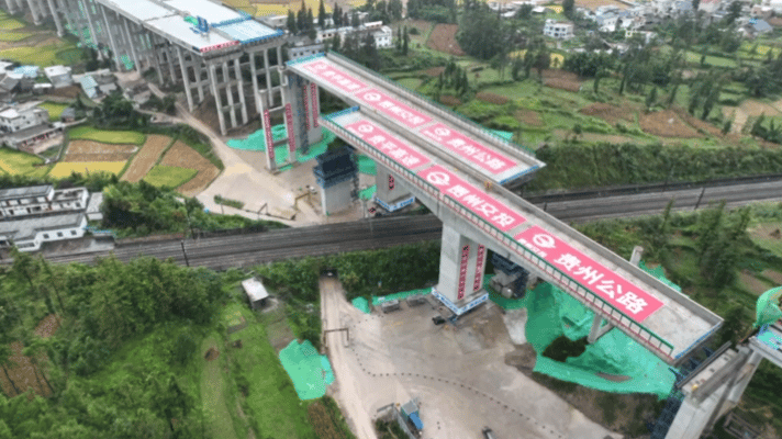 9月25日凌晨,贵州黔桂铁路上空上演了一场“硬核大片”,由贵州公路集团第九工程有限公司承建,总重24000吨的底至大桥,在58分钟里顺时针转了62.99度,稳稳跨过了下方的铁路线,顺利完成转体施工,堪比“桥梁界的芭蕾旋转”。