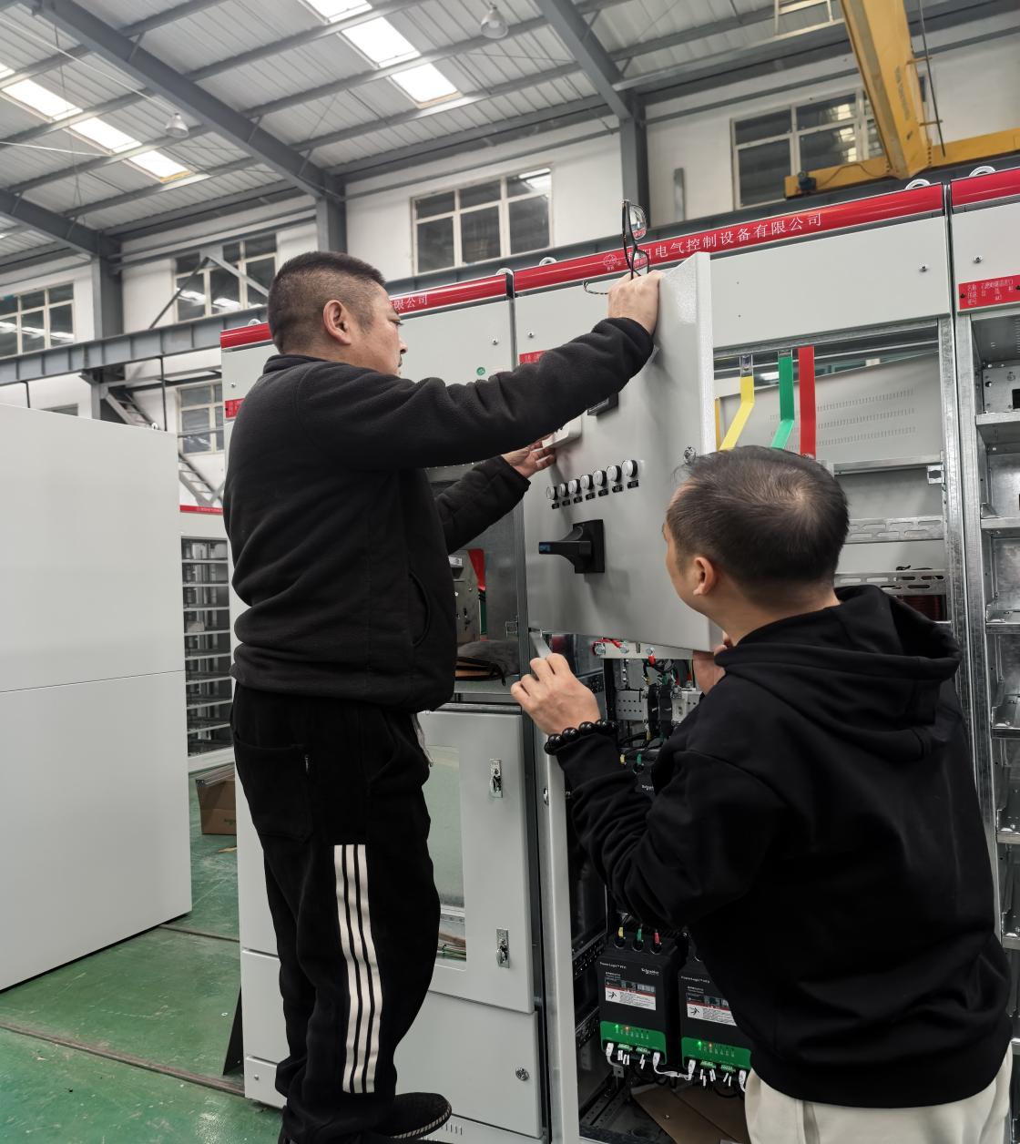 这场“保交付”攻坚,不只是生产部门的任务,更是全公司上下共同的战斗。除生产一线外,技术中心、营销部、物资保障部、质检部、党群工作部等近30名非生产人员也加入支援。物资保障部提前谋划、全程跟进,筑牢“粮草防线”;技术中心人员深入车间,协助安装调试;营销部员工也挽起袖子,参与到低压出线柜的组装中。