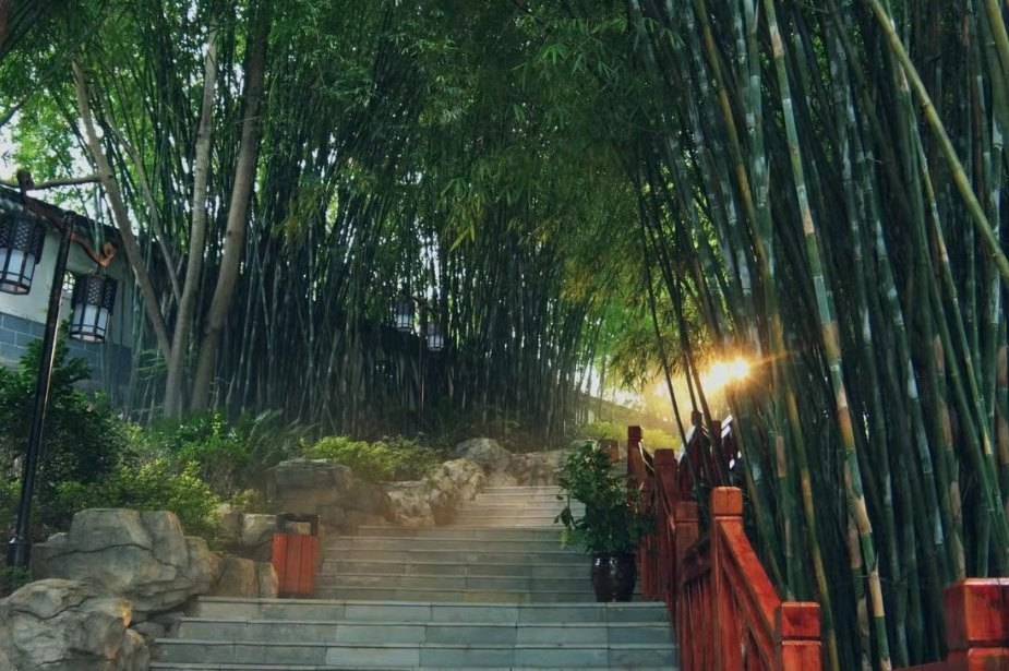 通过竹林往上走,既为景区入口,是通往温泉、酒店的主大门,右侧是温泉泉源,也是温泉的取水点。