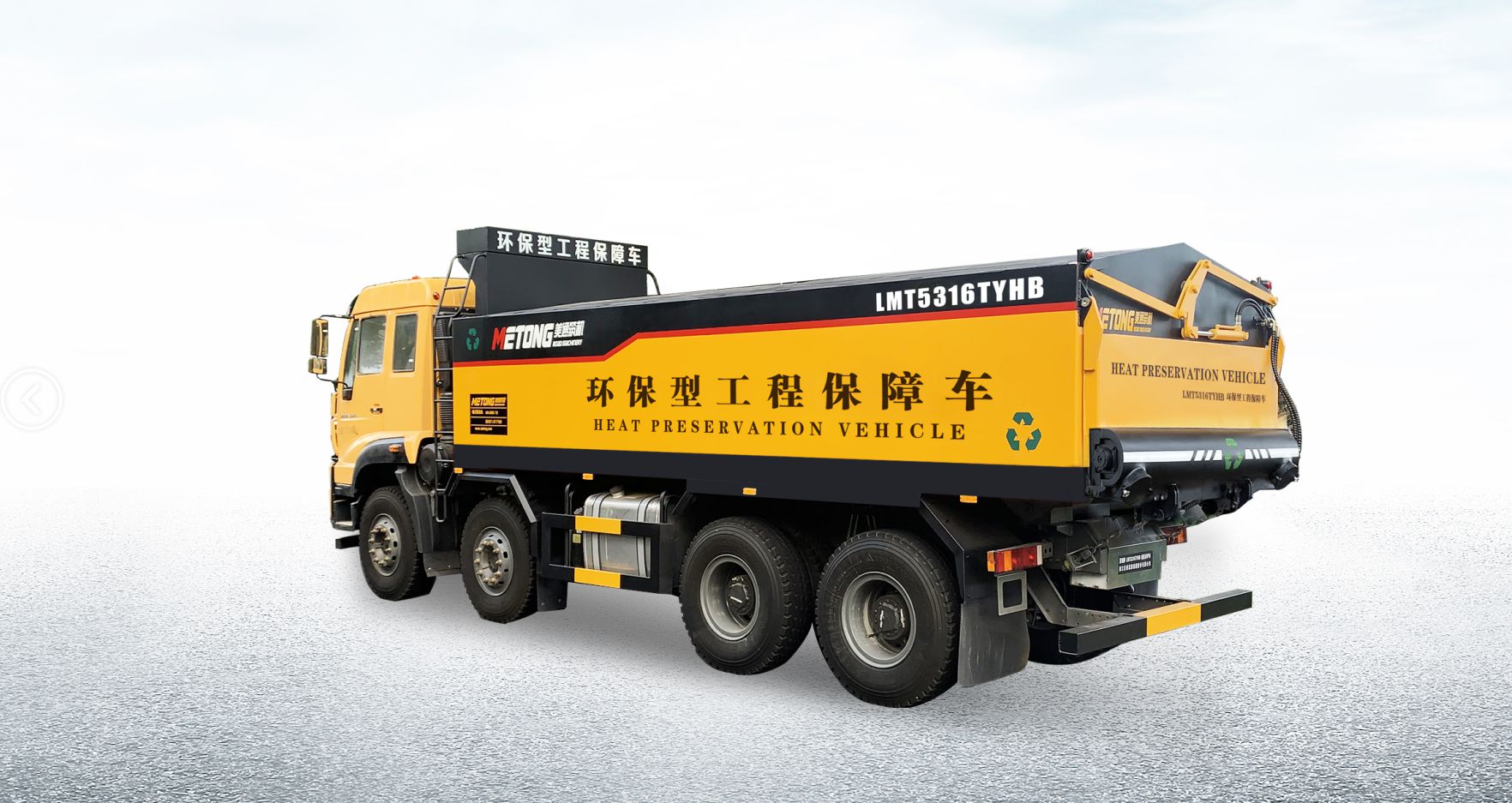 环保型工程保障车(沥青混合料保温转运车),是一款实现沥青混合料长距离保温运输的专用特种车辆,可用于公路、市政道路(大工程量)建设施工,也可用于公路、市政道路(中小工程量)的养护作业施工。